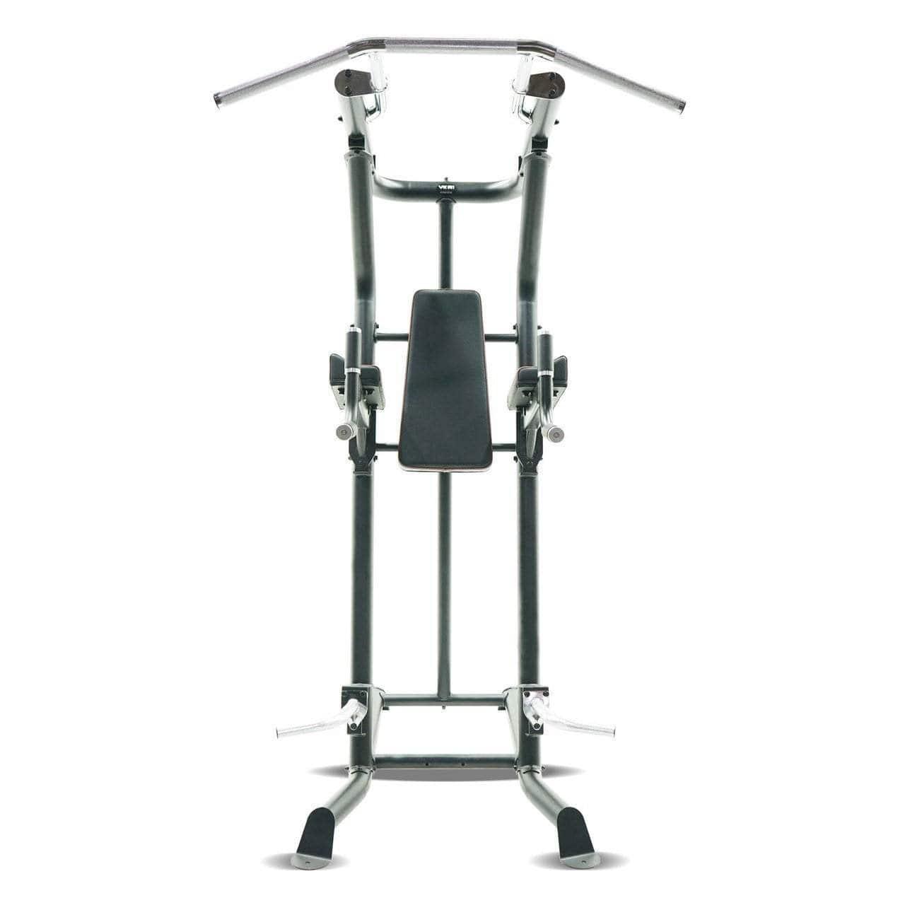 The oversized pull up bar allows for a greater range of motion and a fit for users of all sizes. Integrated dip and push up handles are also oversized, offering a more comfortable grip and more versatility in your exercises. And concaved, double stitched pads bring superior comfort to your knee raises. This well-rounded, heavy duty VKR is built for both commercial and home gym use.