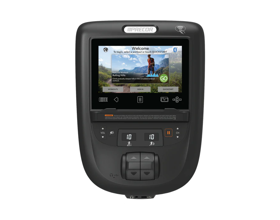 Key Panel: Speed Incline User Interface: Total Distance, Distance Remaining Total Calories Burned, Calories/Min, Calories/Hr, Mets, Watts Time Elapsed, Time Remaining, Segment Time Pace, Average Pace, Average Speed, Elevation Gain Heart Rate, Average Heart Rate, Max Heart Rate